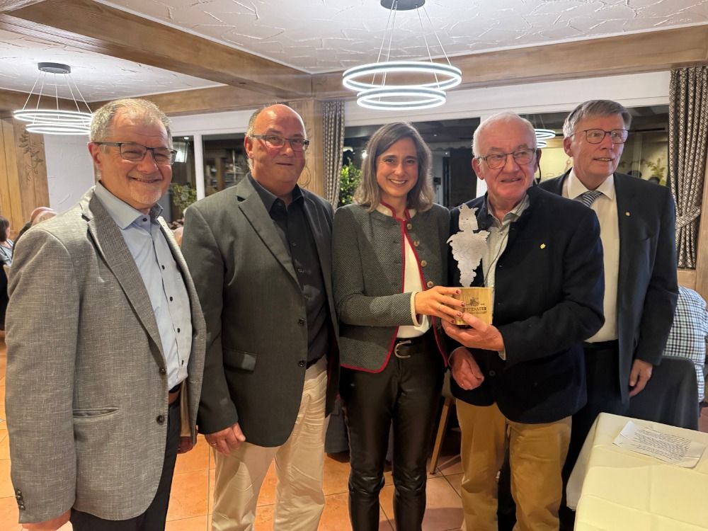 Am 22. Oktober 2025 konnte erstmals der Michael-Roschach-Förderpreis der Weinbruderschaft Ortenau verliehen werden. Die mit 500 Euro dotierte Auszeichnung wurde im Weingut von Simon Huber sowie im Weinhotel Pfeffer & Salz in Gengenbach überreicht. Der Förderpreis, der eng mit dem Namen des Gründungsordensmeisters Michael Roschach verbunden ist, will Menschen sichtbar machen, die es verdient haben, für ihre junge Ideen, ihr persönliches Engagement oder ihre Projekte rund um den Ortenauer Wein geehrt zu werden. Die Ausgestaltung des Preises basiert auf der Idee, Kaiserin Richardis als verbindendes Element am Oberrhein in einer eigens geschaffenen Skulptur aus Edelstahl darzustellen. Sie zeigt Kaiserin Richardis gemeinsam mit Weinreben und symbolisiert die historische Wurzel des Ortenauer Weinbaus. Richardis hatte nachweislich im Jahr 888 mit einem Erlass Wein aus dem Elsass in die Ortenau zum Kloster Gengenbach gebracht und damit den Grundstein für den Weinbau in der Region gelegt. Mit dem sogenannten Weinzehnt gilt Gengenbach seither als Wiege des Ortenauer Weines. Die Skulptur wurde von Lara Kimmig grafisch entworfen und von Philipp Armbruster mit einem Sockel aus Eichenholz versehen. Beide junge Persönlichkeiten stammen aus Familien von Weinbrüdern und stehen damit selbst in enger Verbindung zur Weinbruderschaft. Die Materialien des Preises, Eiche und Edelstahl, wurden bewusst gewählt, da sie eng mit dem Weinbau verbunden sind: Eiche für den klassischen Ausbau des Weines und Edelstahl für moderne Vinifizierung. Aus zwölf qualifizierten Vorschlägen, die von Weingeschwistern sowie Partnern der Ortenauer Weinbruderschaft eingereicht wurden. Darunter der DeHoGa-Ortsverband Offenburg, die Schwarzwald Tourismus GmbH und der Weinbauberater des Ortenaukreises, Johannes Werner, wählte eine fünfköpfige Jury die diesjährige Preisträgerin aus. Der von Weinbruder Klaus Armbruster eingereichte Vorschlag überzeugte besonders, weil er die Themen Heimat, Bildung und Ortenauer Wein auf vorbildliche Weise miteinander verbindet, getragen vom Engagement junger Menschen. Die würdige erste Preisträgerin des Michael-Roschach-Förderpreises ist die Schülerfirma „Rebgeister“ der Schlossbergschule in Kappelrodeck. Die engagierten Schülerinnen und Schüler setzen sich aktiv für Nachhaltigkeit im Weinbau ein. Das Preisgeld wird für die Anschaffung junger PiWi-Reben und die Bepflanzung einer Brachfläche mit Blühhecken verwendet. Ein Projekt, das beispielhaft zeigt, wie junge Menschen Verantwortung für die Zukunft des Ortenauer Weines übernehmen.